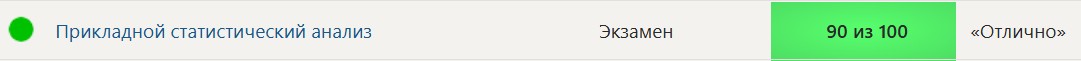Прикладной статистический анализ ответы МТИ Синергия. Все тесты темы 1-6. Отличный результат 90/100 баллов.